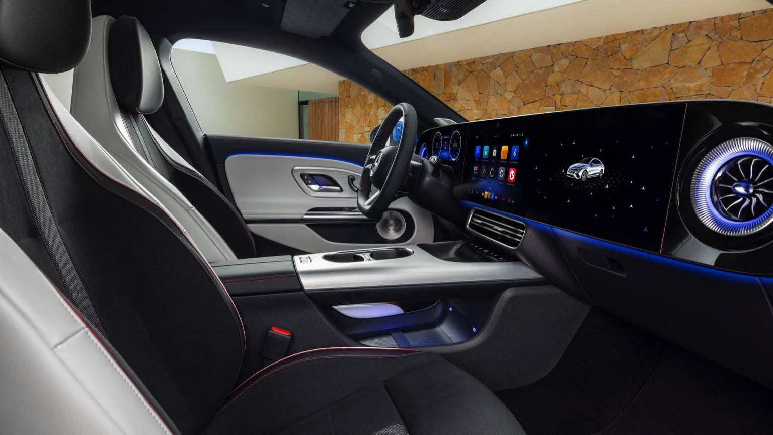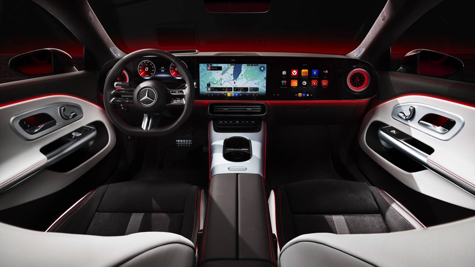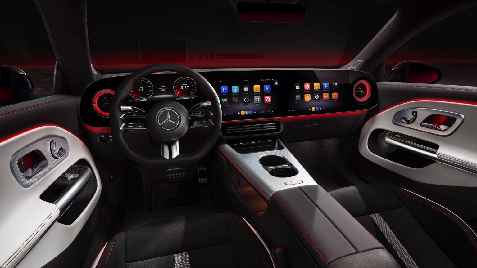 Im Innenraum wird der E-CLA den Kampf gegen Teslas Minimalismus mit gewohntem Mercedes-Luxus aufnehmen. Statt eines einzelnen Quermonitors wird ein “M-BUX Superscreen” erwartet, der sich fast über die gesamte Breite des Armaturenbretts erstreckt. Gesteuert wird alles über das ebenfalls neue Betriebssystem MB.OS, das eine noch tiefere Integration von Fahrzeugfunktionen, Navigation und Entertainment verspricht. Die Materialqualität und Verarbeitungsanmutung dürften, wie von Mercedes gewohnt, den Standard in der Klasse setzen.