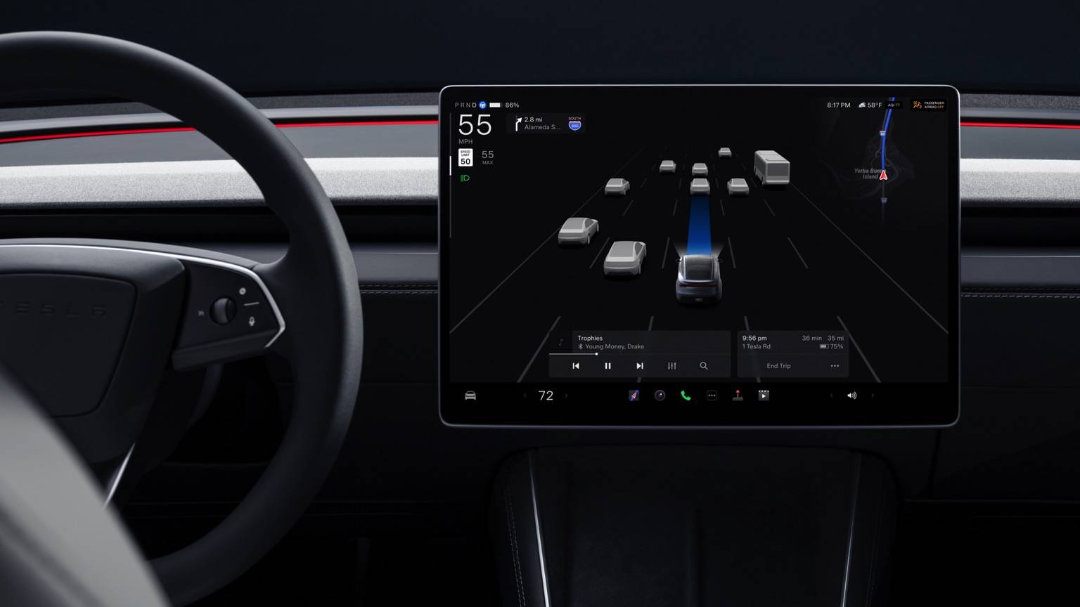• 8-Zoll-Display für Fondpassagiere: Wie im Model 3 können nun auch die Passagiere auf der Rückbank über einen eigenen kleinen Touchscreen Klimatisierung und Medien steuern.